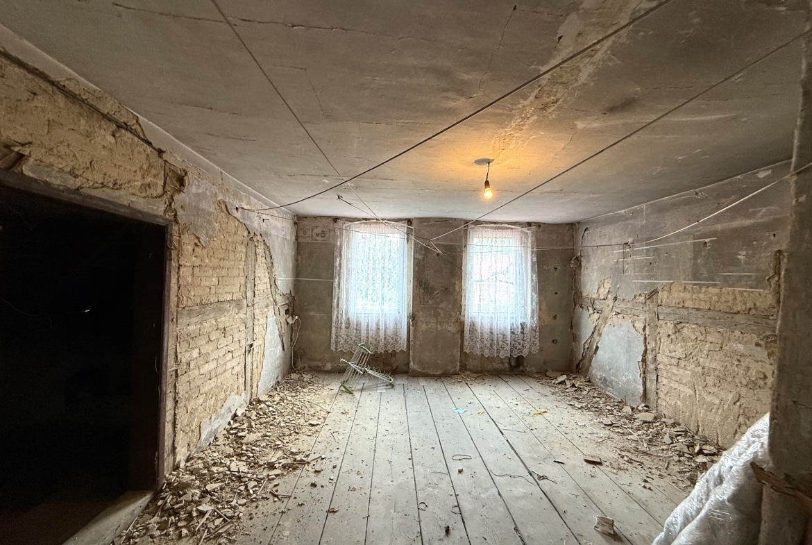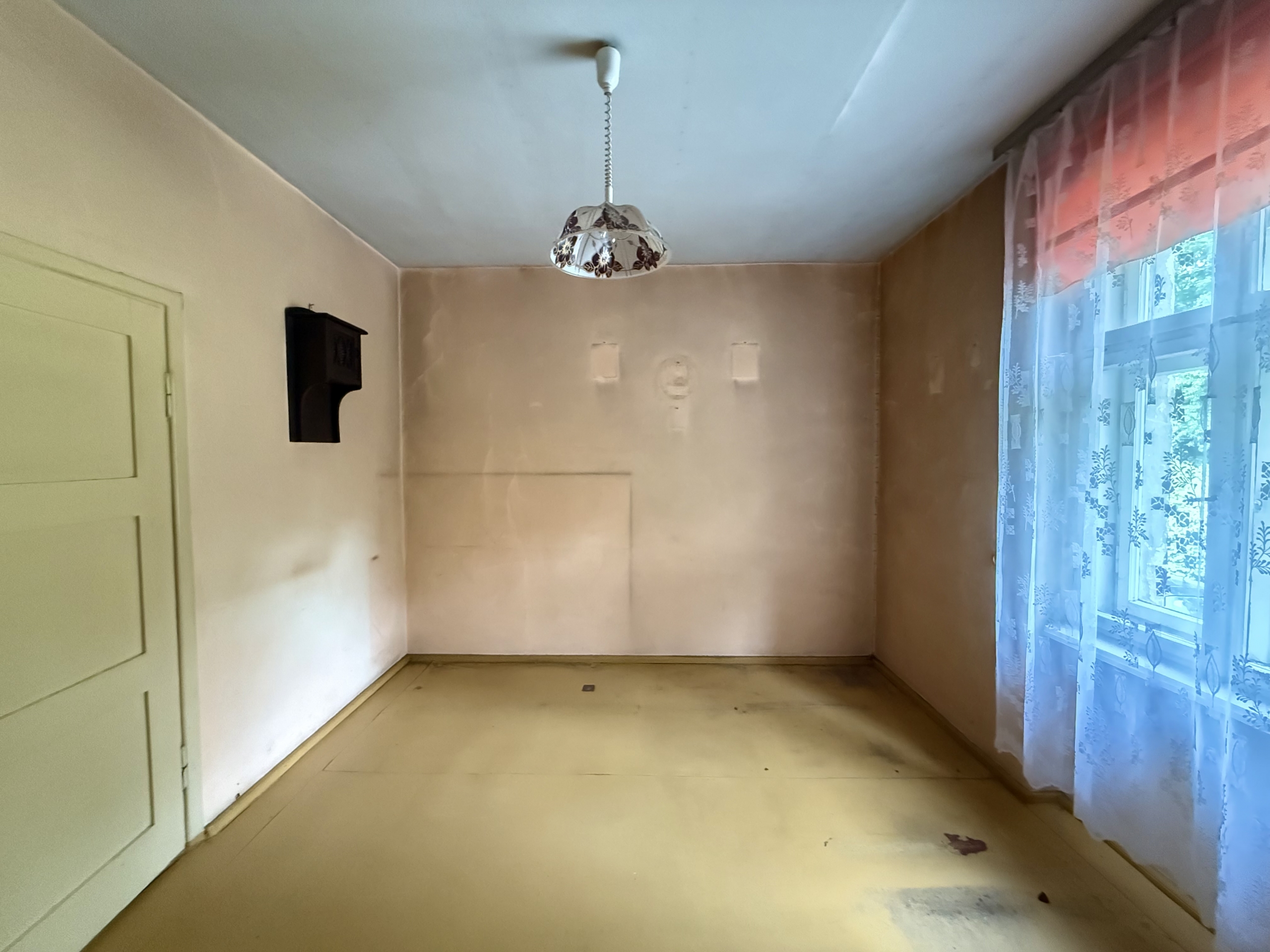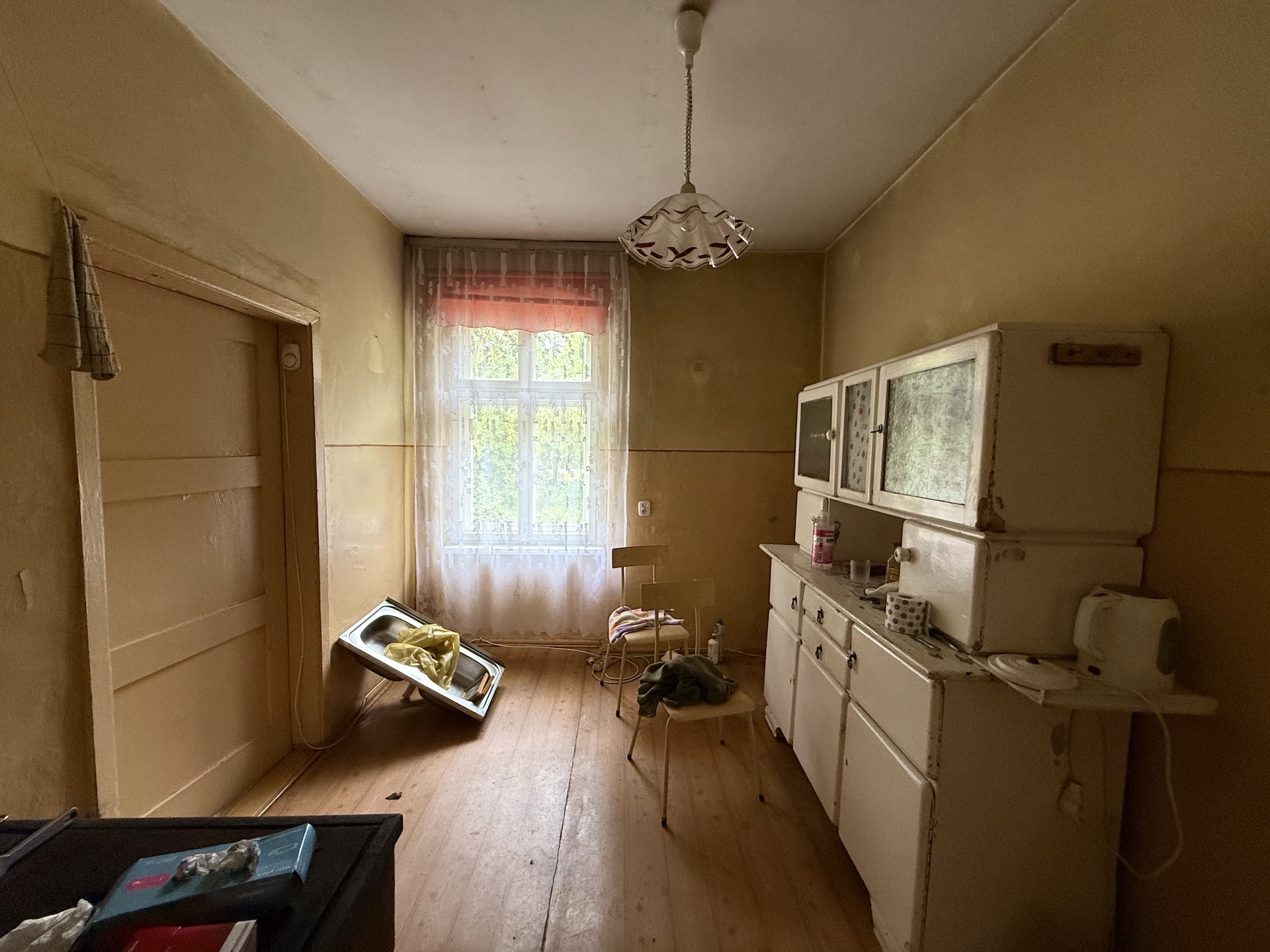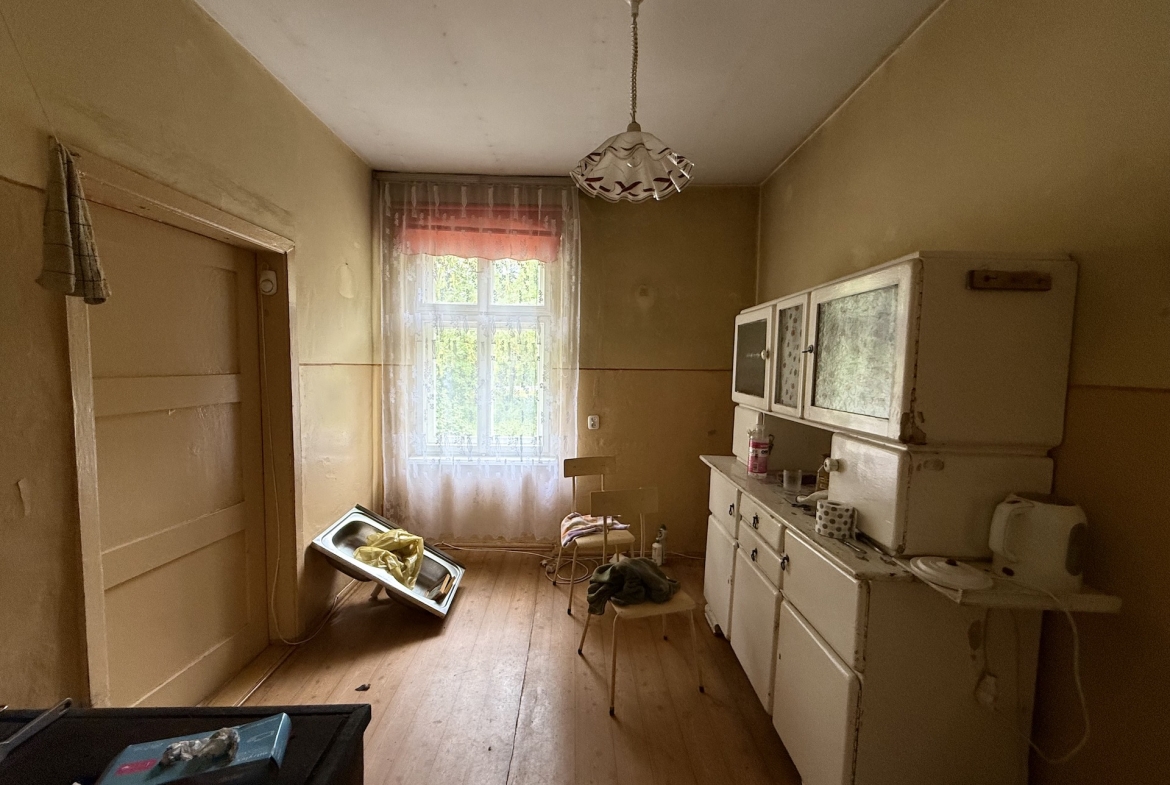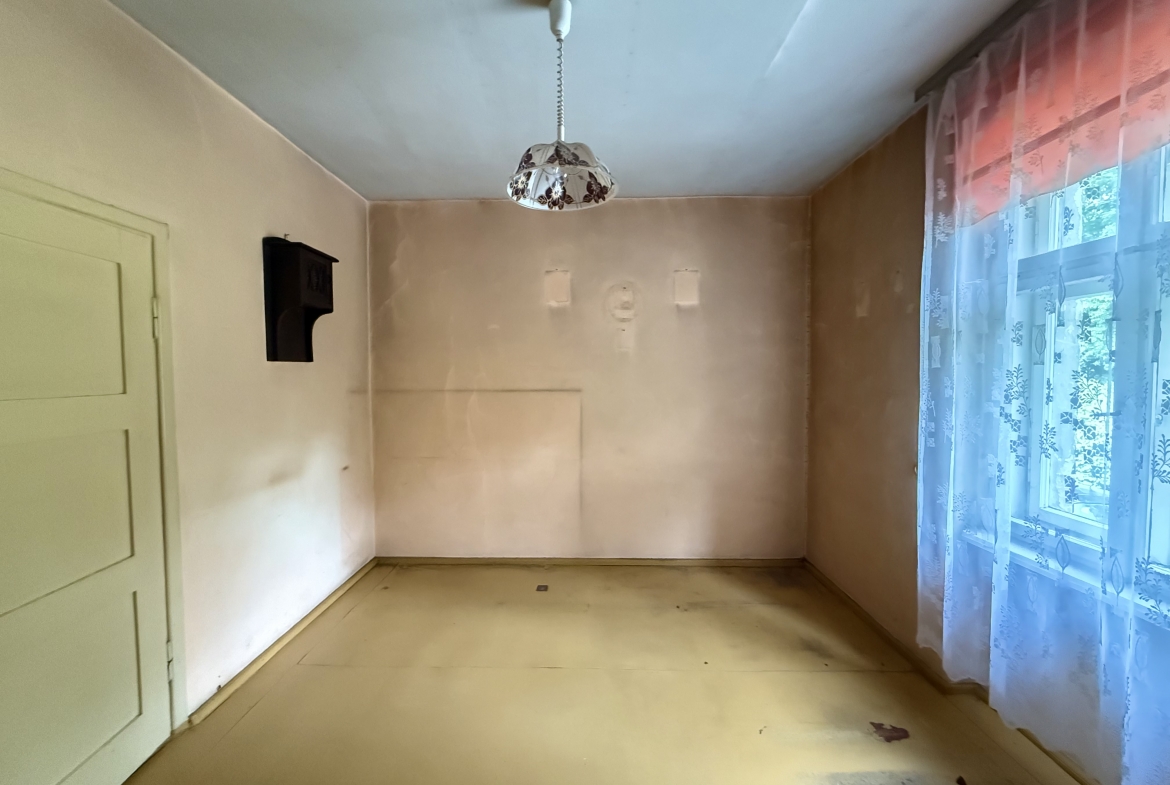 Na parterze znajduje się przestrzeń mieszkalna gotowa do odświeżenia lub remontu według własnych potrzeb. Dom posiada stabilne fundamenty i dach w dobrym stanie. Wnętrza są do zagospodarowania – to szansa dla osób, które marzą o stworzeniu czegoś wyjątkowego i dopasowanego do własnych potrzeb.
