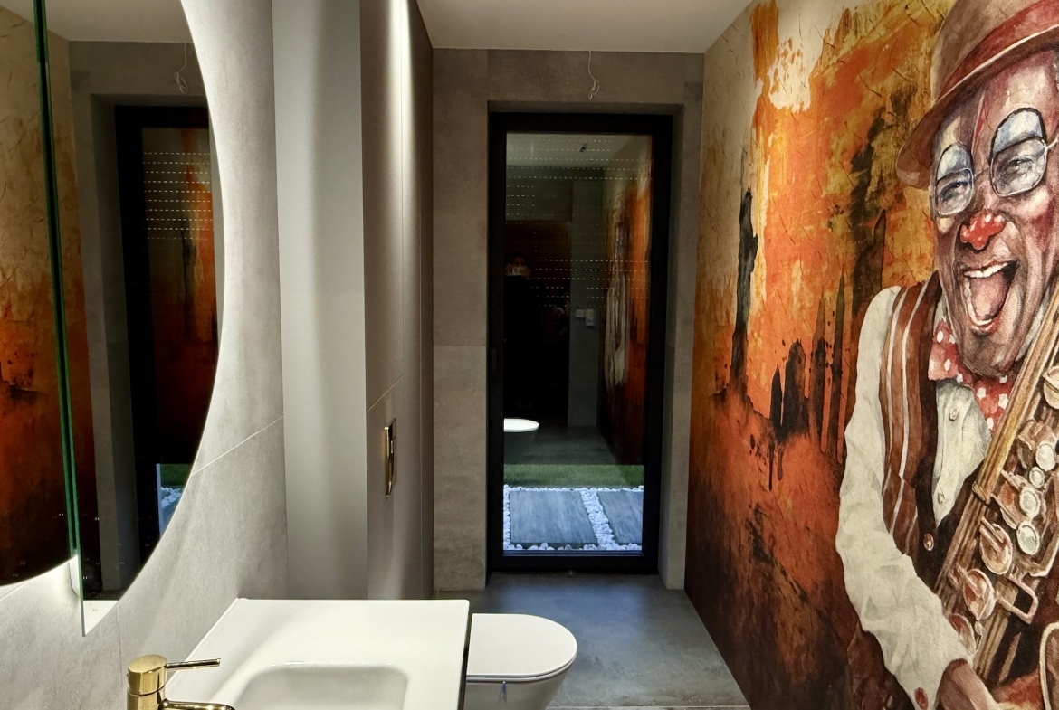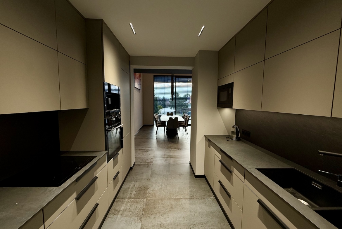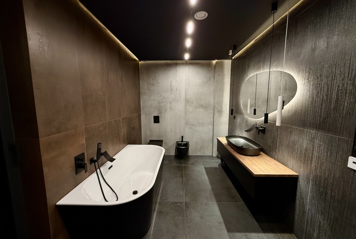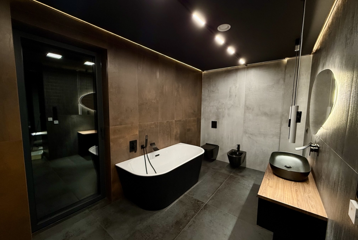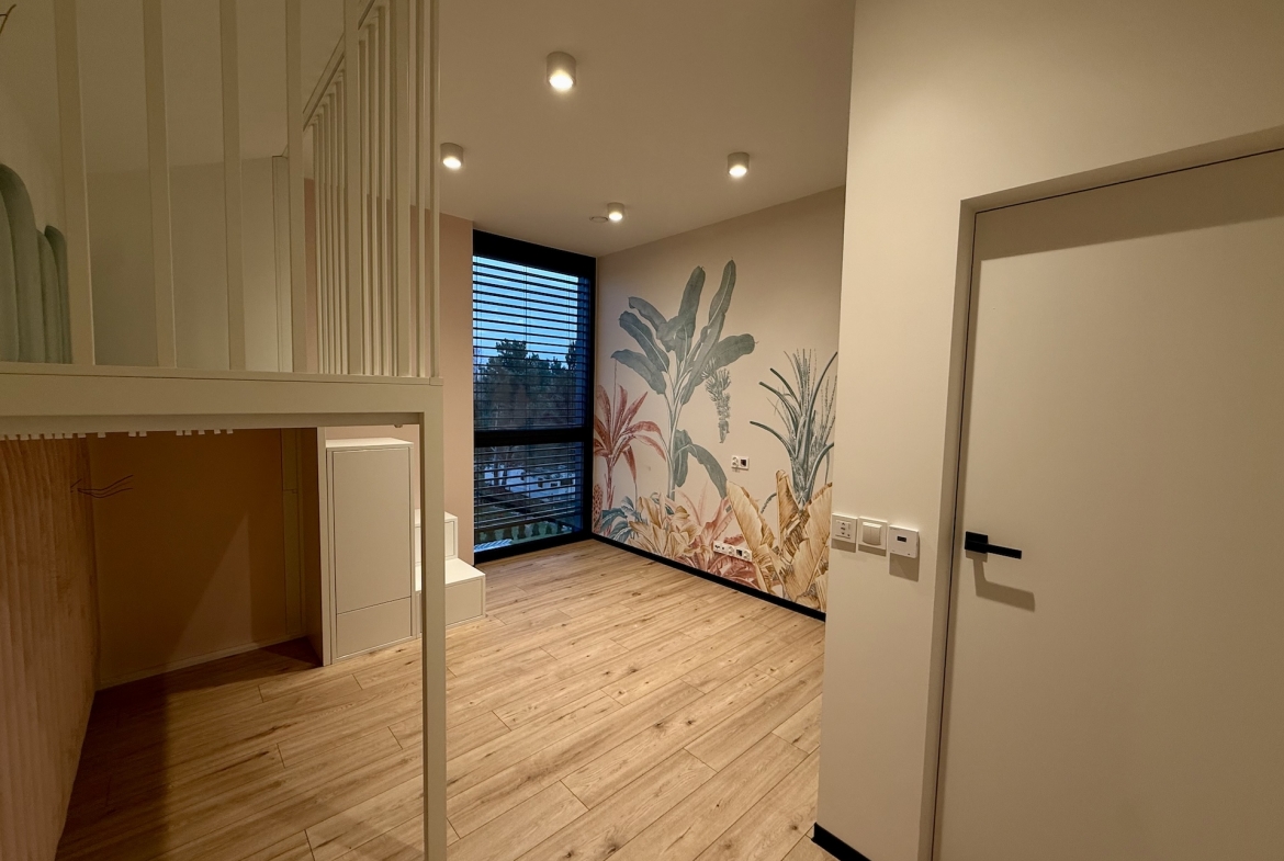 W domu dominują panele oraz płytki premium, a oświetlenie zaprojektowano zgodnie z najnowszymi trendami – funkcjonalnie, elegancko i z dbałością o każdy detal. Dodatkowym udogodnieniem są rolety sterowane pilotem, podkreślające nowoczesny standard nieruchomości.