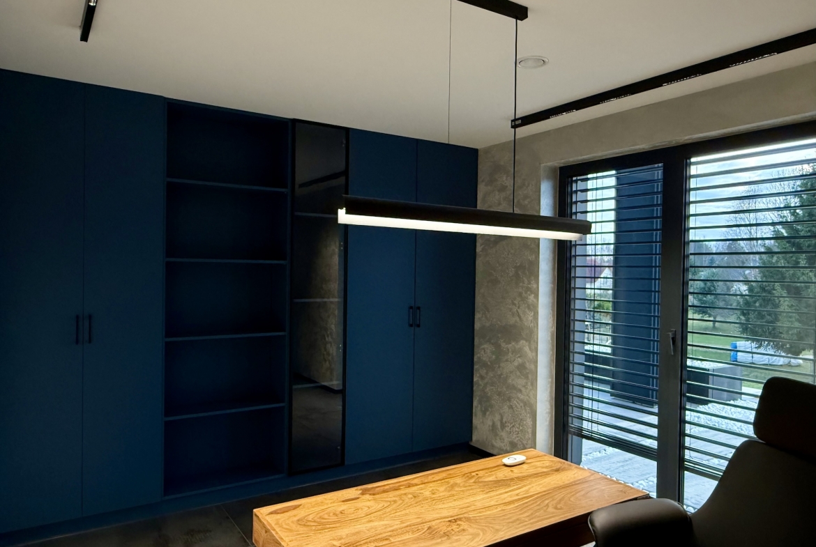 Dom w Łagowie posiada również osobne biuro, które umożliwia komfortową pracę zdalną, z dala od części prywatnej.